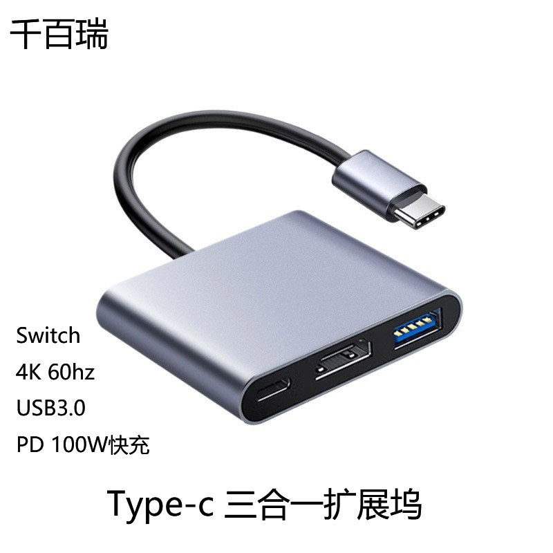 Type c変換hdmi三合一変換ケーブルusb c変換usb + pd電源ハブ拡張ドック4k