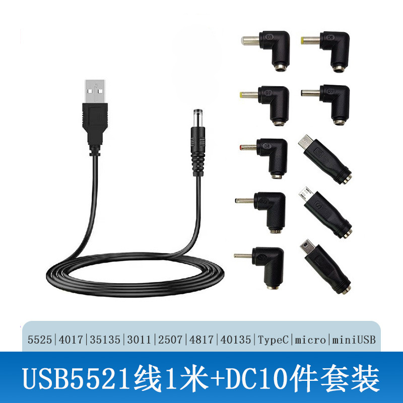 充電アダプタ5.5*2.1dc dc dc 5.5*2.5と5521公転usb1メートル短い線10合1セット