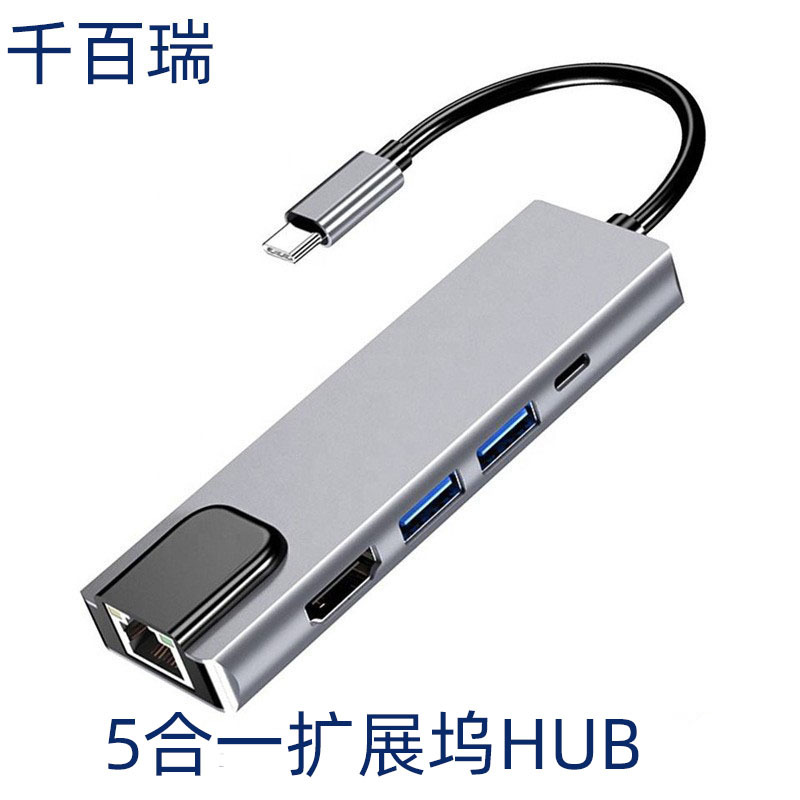Type-C 5-in-1 ドッキングステーション、100Mbps ネットワークカード、3.0 USB ハブ、4K 高解像度スクリーン投影コンバーター