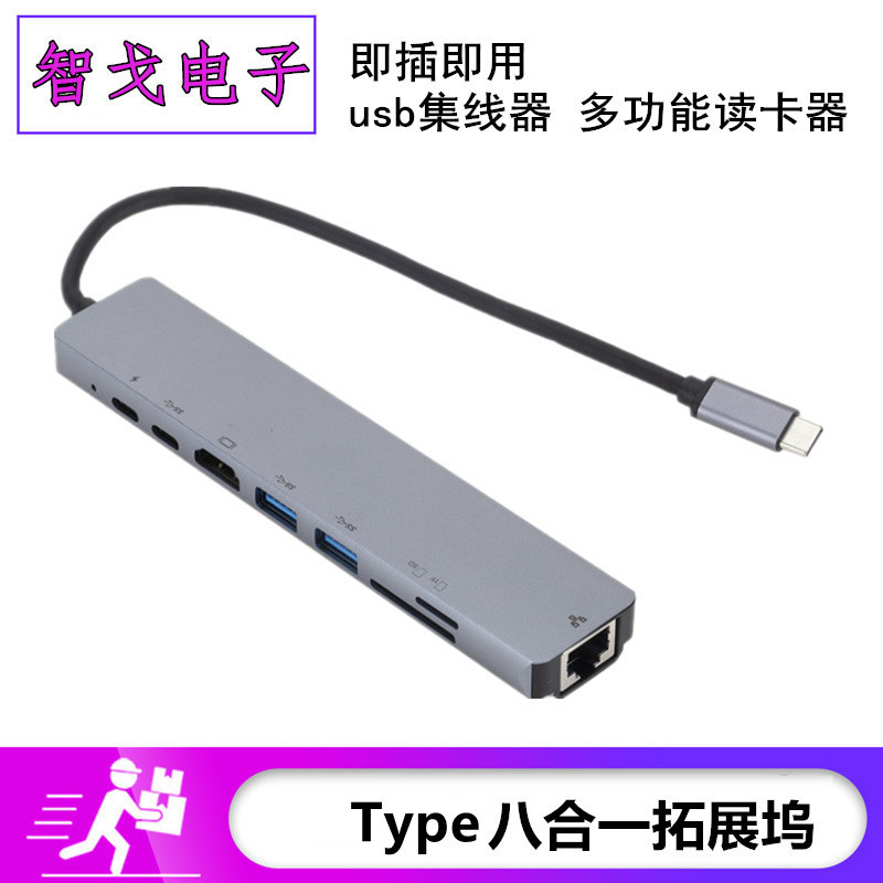 Type-hdtvネットワークカード拡張ドックhub type hub 8 in 1ハブカードリーダー + rj45