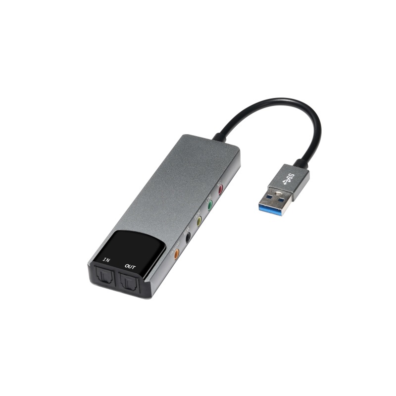 新しいUSB外付け光ファイバーサウンドカード多機能アルミニウム合金サウンドカードミキシング機能付き6-in-1 USB SOUND