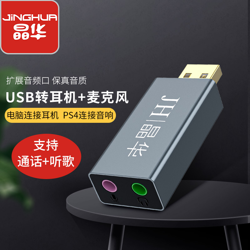 晶華usb外付けサウンドカード変換器コンピュータデスクトップコンピュータドライブレスPS4接続3.5mmオーディオヘッドフォン