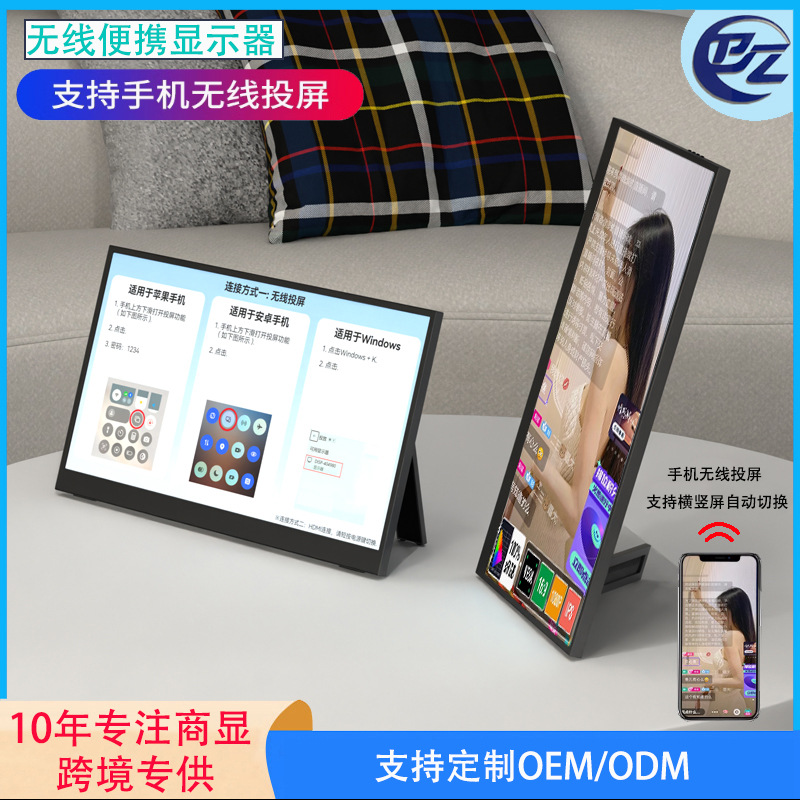 真のワイヤレスポータブルモニター、Android、フルーツフォン、PC対応、分割画面拡張、ライブ配信、ワイヤレススクリーン投影