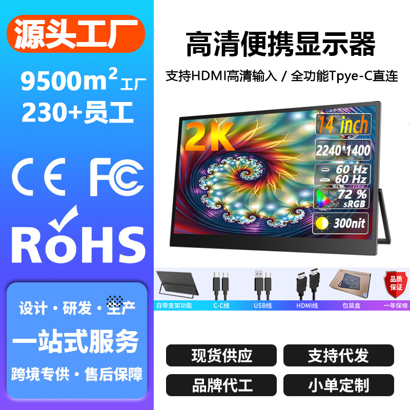 薄型軽量 14 インチ 2K HD ポータブル ディスプレイ モバイル オフィス コンピューター拡張セカンダリ スクリーン スイッチ ポータブル スクリーン
