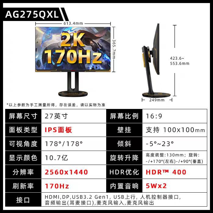 AOC AG275QXL AOC&リーグ・オブ・レジェンド共同ブランド 27inch ゲーミング e スポーツ モニター 2K