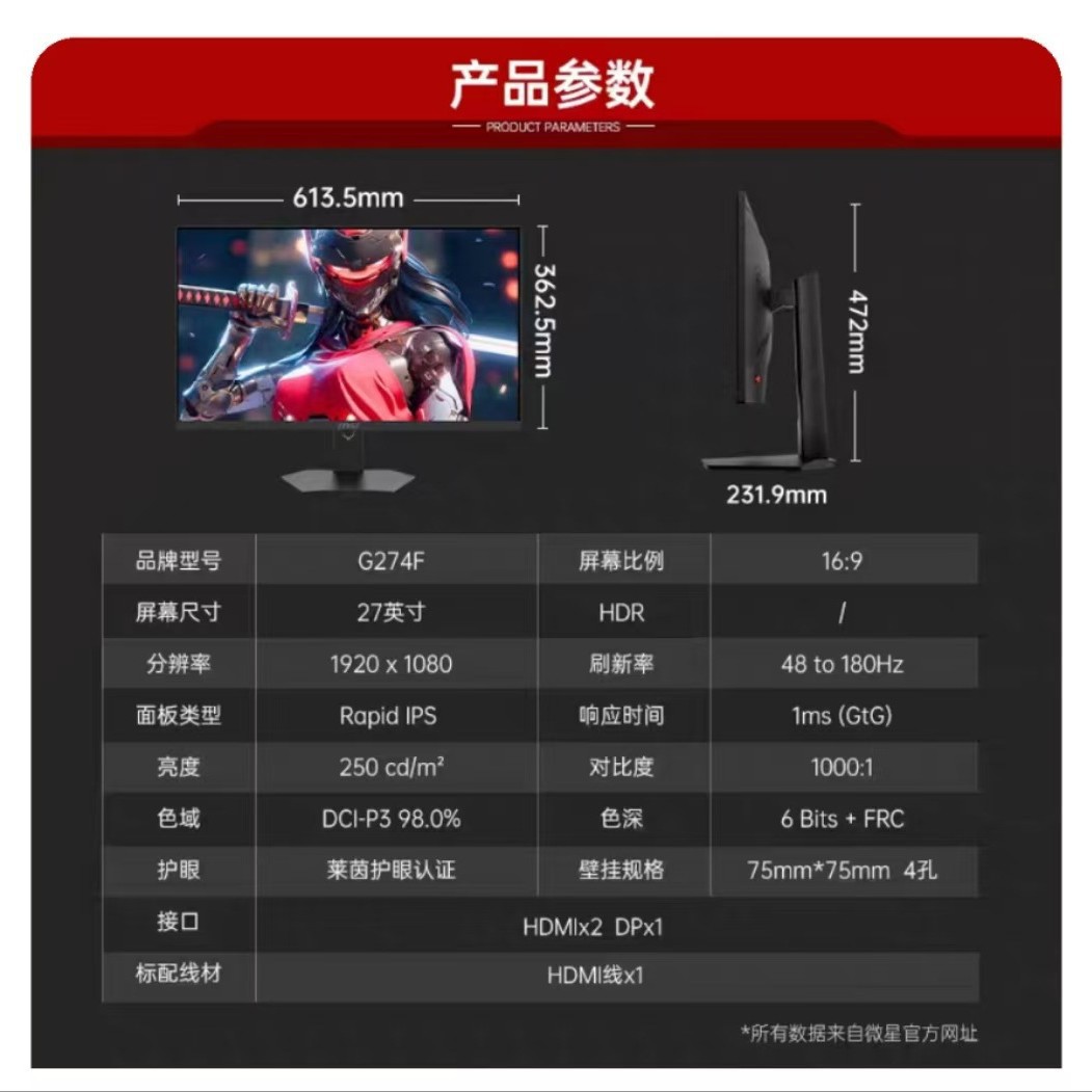 AOC 27 インチ 180HZ ゲーミング モニター 1MS 応答高速 LCD リトル キング コング 27G40E に適しています。
