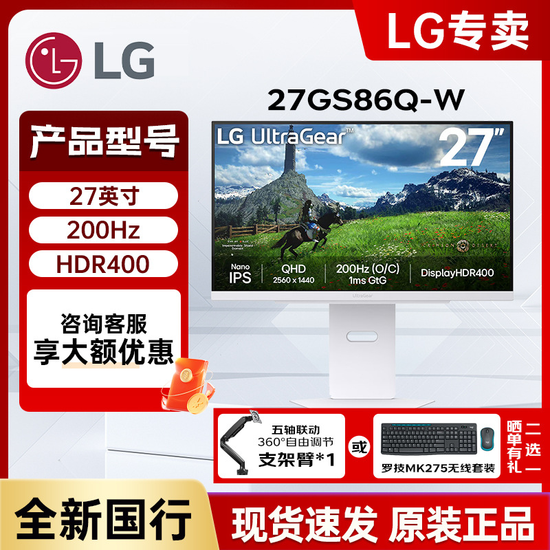 LG 27GS86Q-Wホワイト限定版モニター27インチ2K200Hzパソコン用Nano IPSモニター