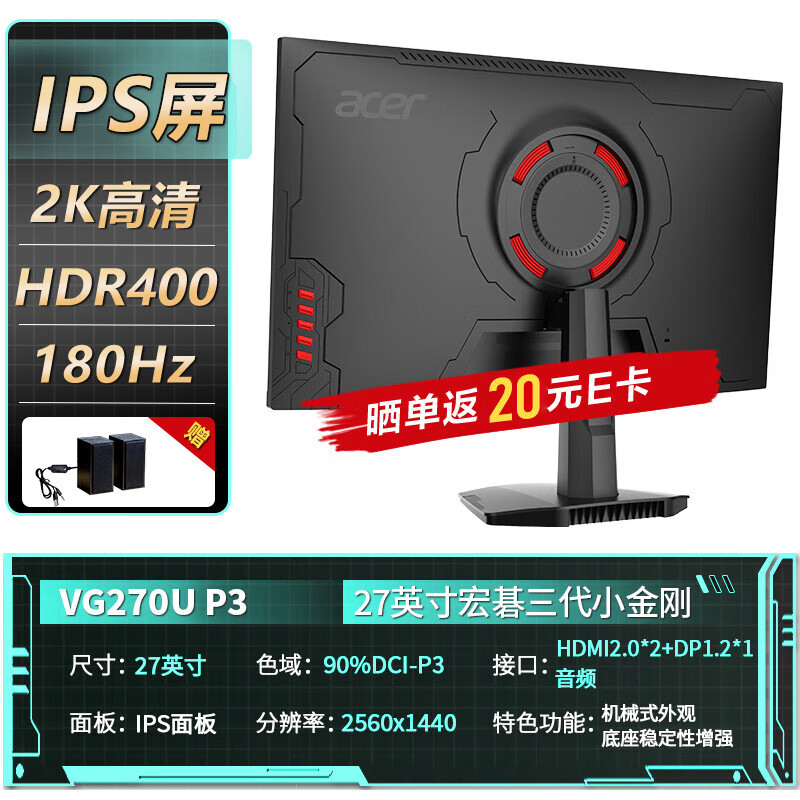 技術嘉G27QA 27インチ2K/180Hzディスプレイ電気競争小金剛IPS液晶スクリーン電気競争ゲーム