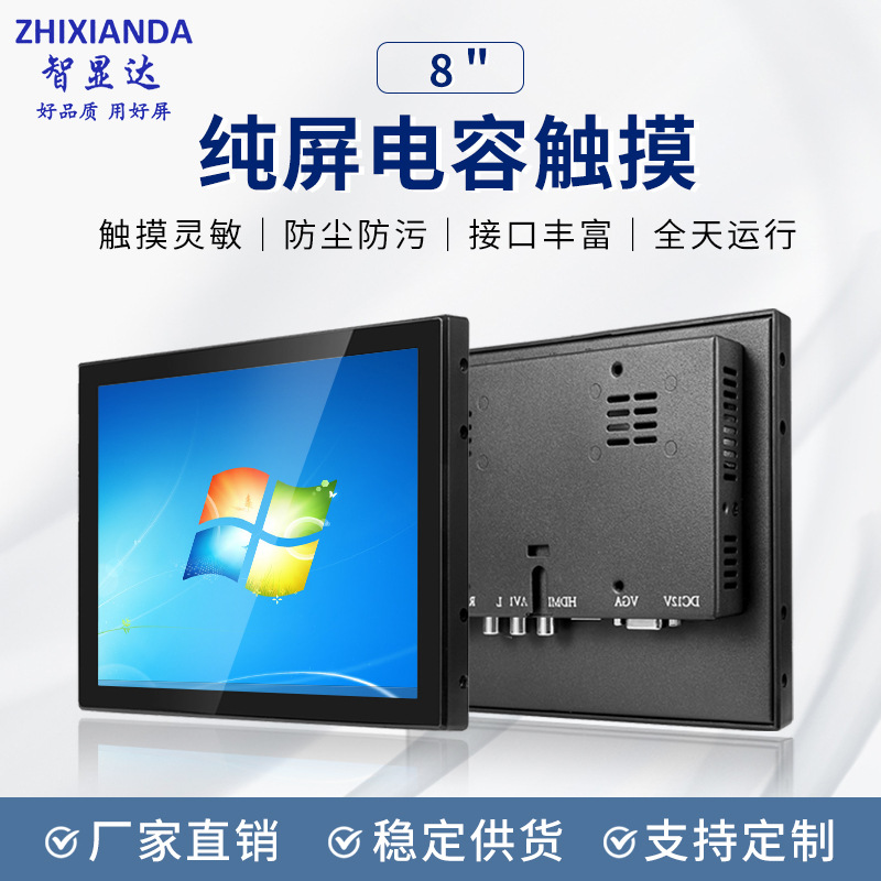 智顕達8インチ純平静電容量タッチ工業ディスプレイ/vga監視hdmiハイビジョン表示/ip 65防水