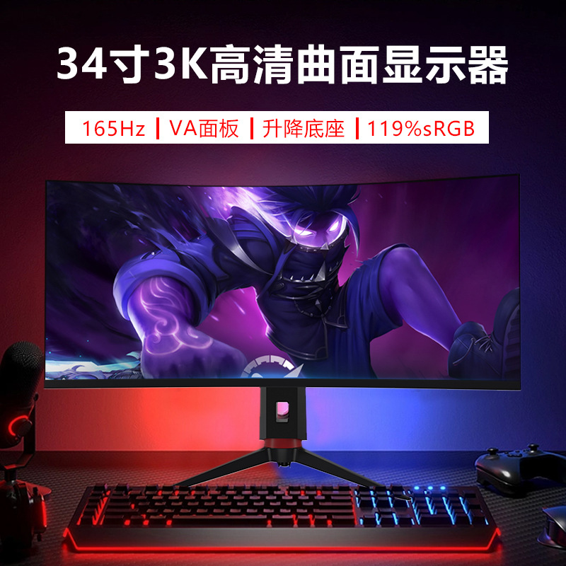 34インチデスクトップゲームディスプレイフィルタブルー光フラッシュスクリーン1000r曲率液晶ディスプレイ昇降ベース