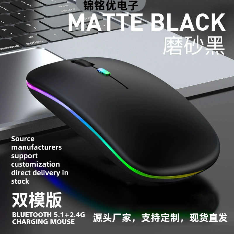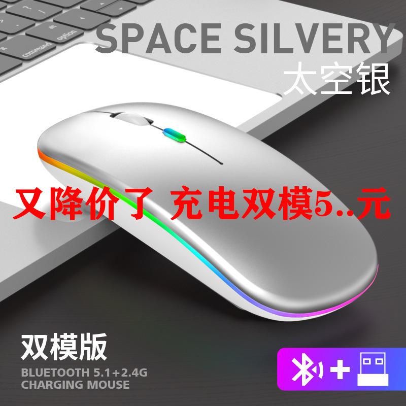 新しいbluetooth二重モード充電マウス5.0静音無声ノートゲーム女子2.4g無線マウス発光