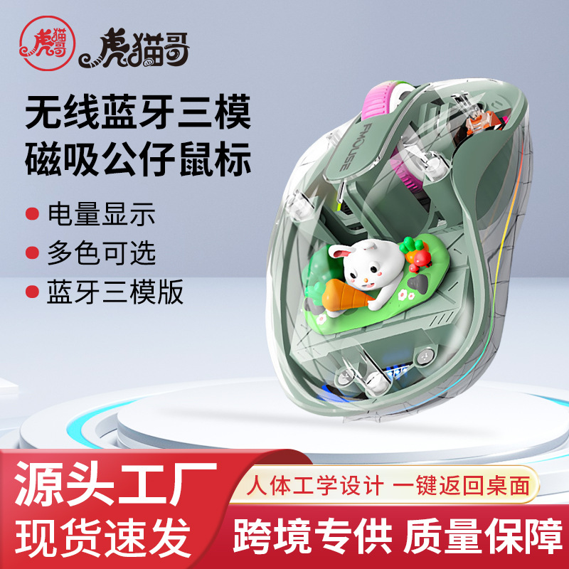 ラップトップ発光透明マウスワイヤレス Bluetooth 3 モード充電人間工学に基づいた磁気人形充電式