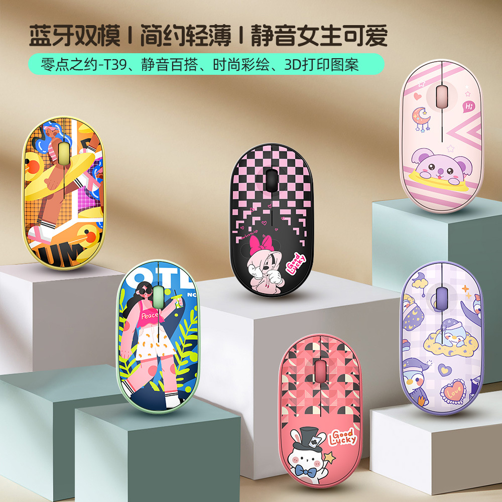 工場在庫塗装済み 3D Bluetooth ワイヤレス デュアルモード マウス T39 2.4G 漫画カラー パターン Bluetooth マウス