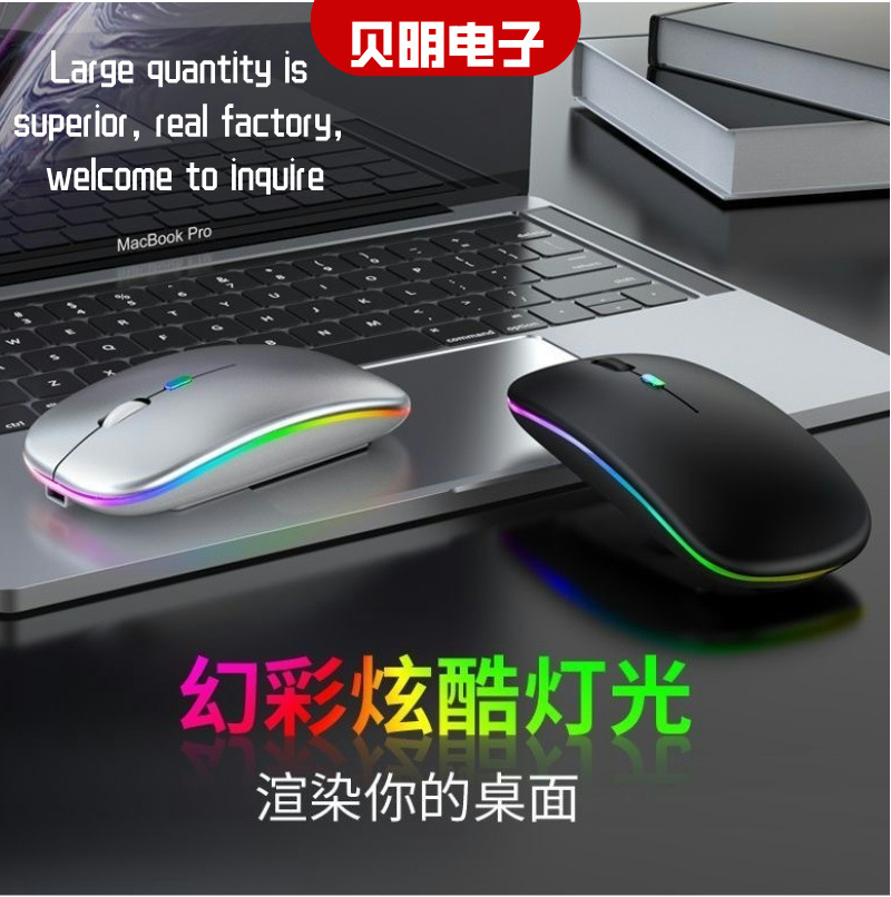 新しいbluetooth二重モード充電マウス5.0静音無声ノートゲーム女子2.4g無線マウス発光