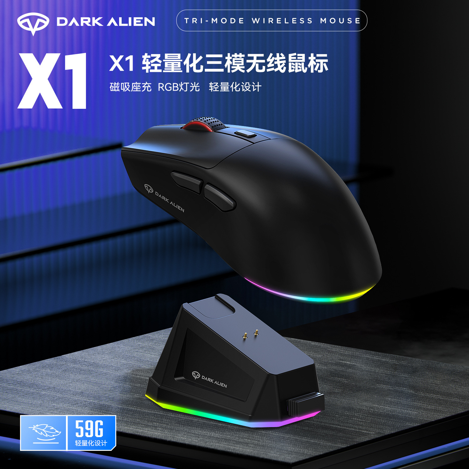 DARK ALIEN X1軽量化ワイヤレスbluetooth 3モードマウスrgb充電ベースゲーム競合オフィス