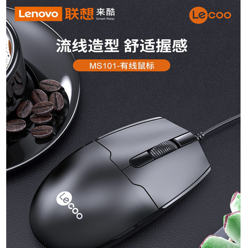 Lenovoを適用してクールなMS101 USB有線マウスノートパソコンのフロスト快適なビジネスオフィス