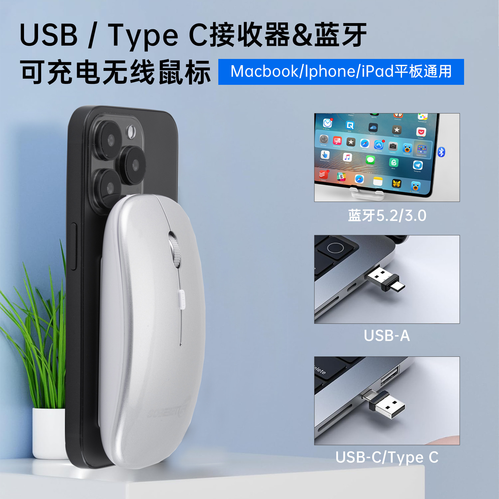 ワイヤレスマウスbluetoothデュアルモード充電可能静音オフィスゲーム電気競争デスクトップノートパソコン共通代理