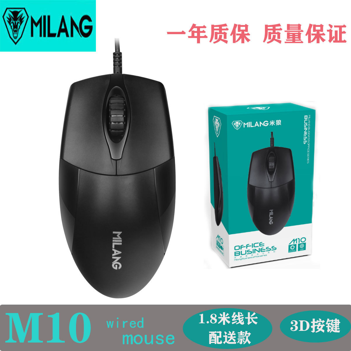 米狼m10ビジネスマウス有線1.8メートル線長パソコンオフィス専用デスクトップノート汎用マウス