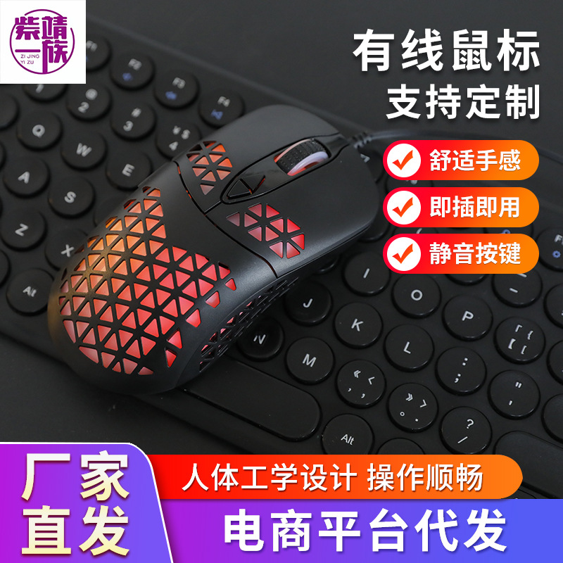 RGBバックライト透かし彫り有線ゲームマウス電気競争LOL鶏マウスビジネスオフィス光電マウス工場