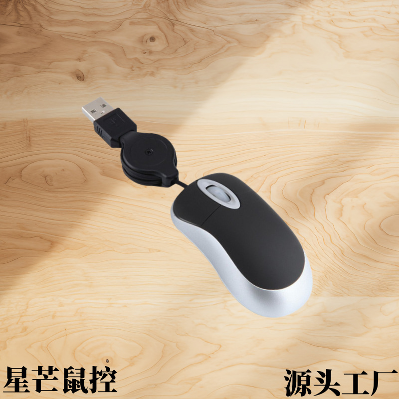 工場在庫の伸縮式ミニ有線マウス、小型光学式ノートパソコン用携帯伸縮式マウス