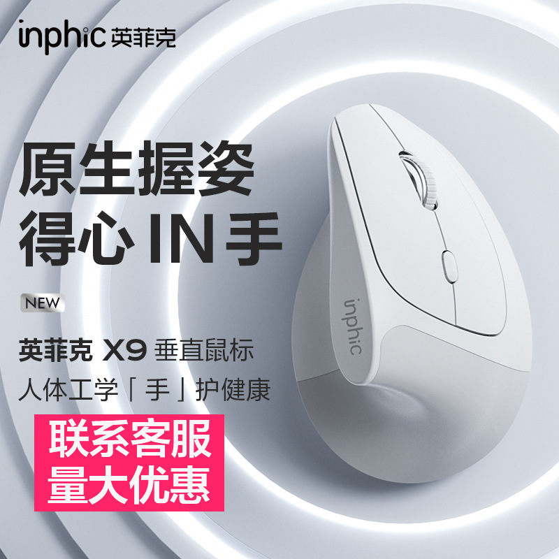 INPHIC X9 垂直ワイヤレスマウス人間工学に基づいた充電サイレントコンピュータオフィス男の子と女の子