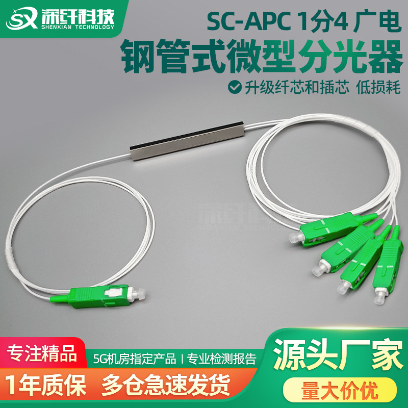 光ファイバPLCマイクロ分光器1分4広電専用均分SC/APC-0.9-SM鋼管式スプリッタ