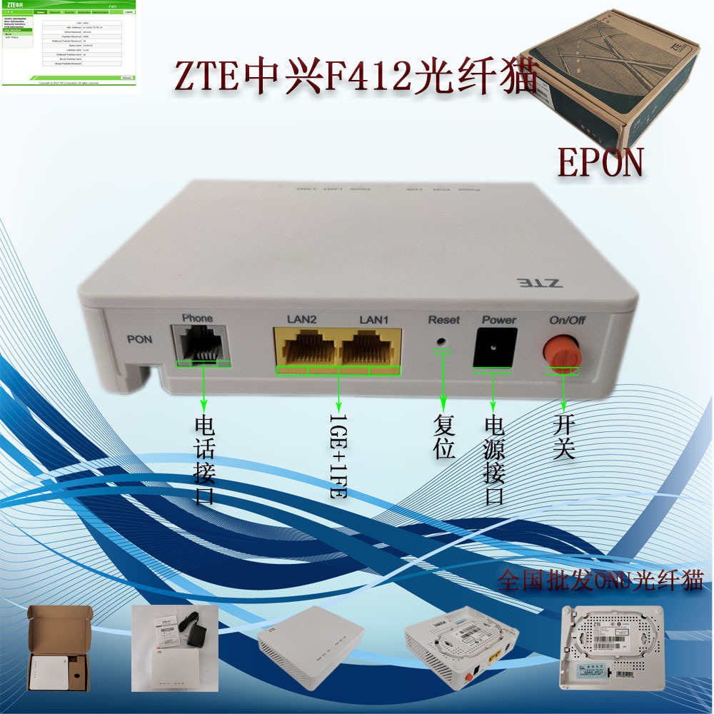 中興f4 12ギガビットネットポート + 1音声ポート光ファイバ猫の英語版無標epon光ファイバ設備に適用する