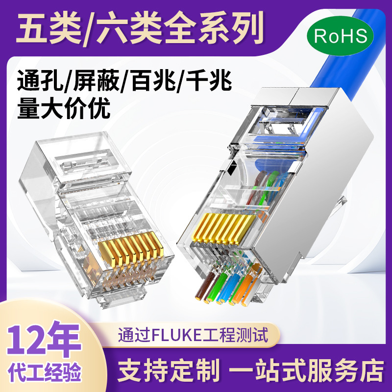 超六類クリスタルヘッド 金メッキ超五類ネットワークrj45貫通型純銅1シールド5類6類ネットワークケーブルクリスタルヘッド