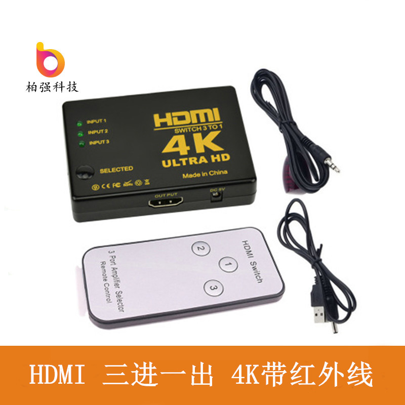 メーカー卸売りhdmi切替器三進一出四kリモコン付き赤外線切替器三進一出三切一
