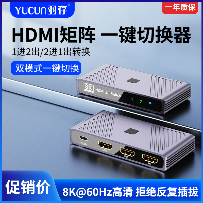 8K HDMI双方向スイッチャー4K 144Hz二进一出Switchコンピュータビデオ双方向スイッチャー