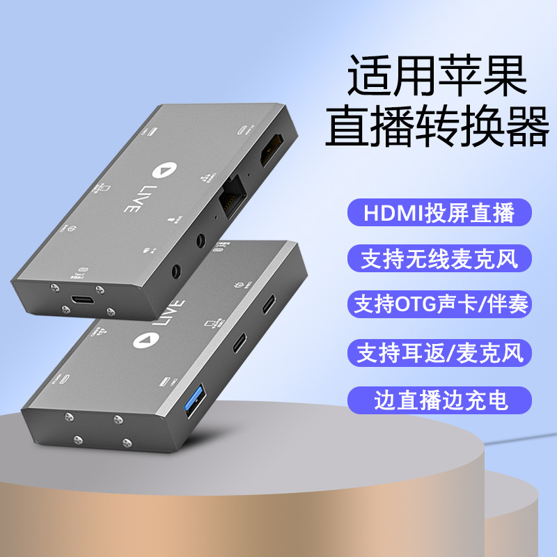 Appleライブブロードキャストコンバータipad携帯電話OTGサウンドカードカラオケキャプチャカードhdmi投影スクリーンネットワークポートマイクに適しています。