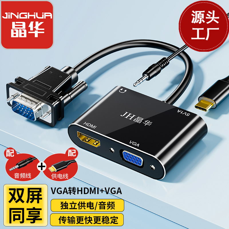 晶華VGAはHDMI VGAに回転して独立して電力を供給します/オーディオダブルスクリーンは共有して2つのディスプレイをサポートして同時に表示します。