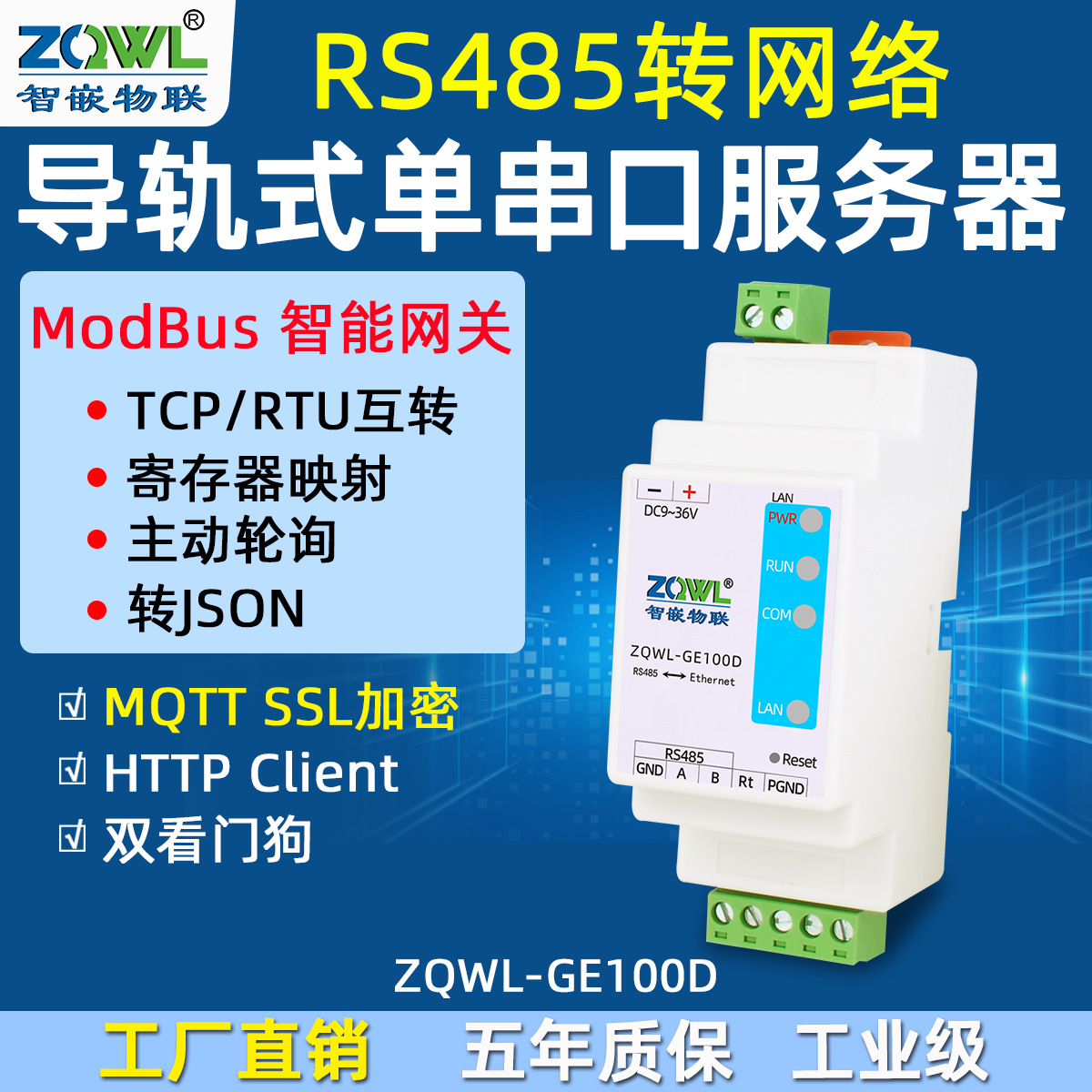 Mqttシングルシリアルサーバ1路485変換イーサネットモジュールmodbusゲートウェイシリアル変換ネットワークポートhttp