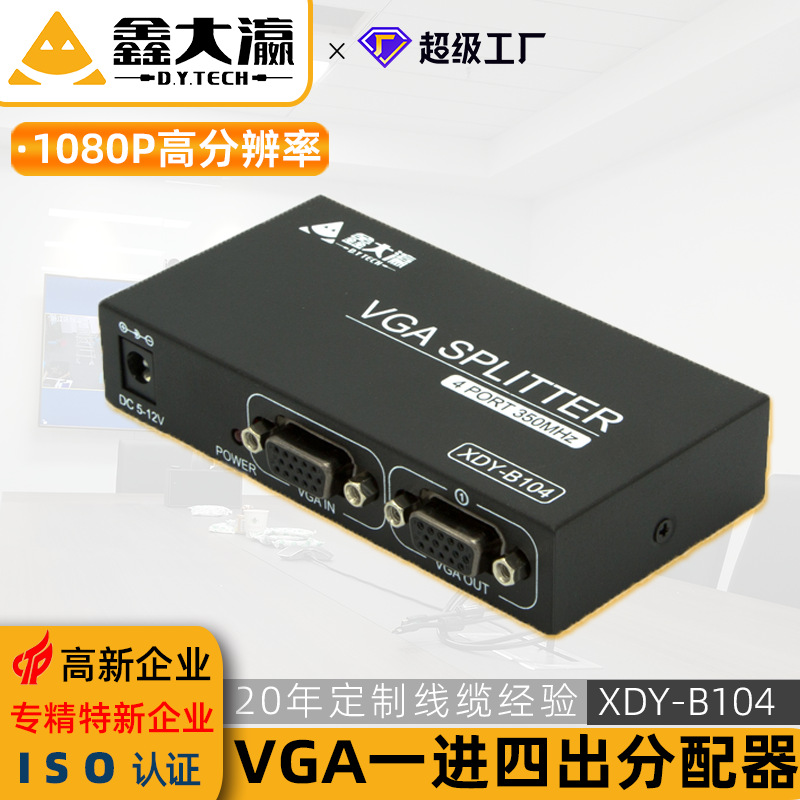 Vga分配器1分4分2 200mhz 1分4出vga hdビデオ1分2分2分周器1分4