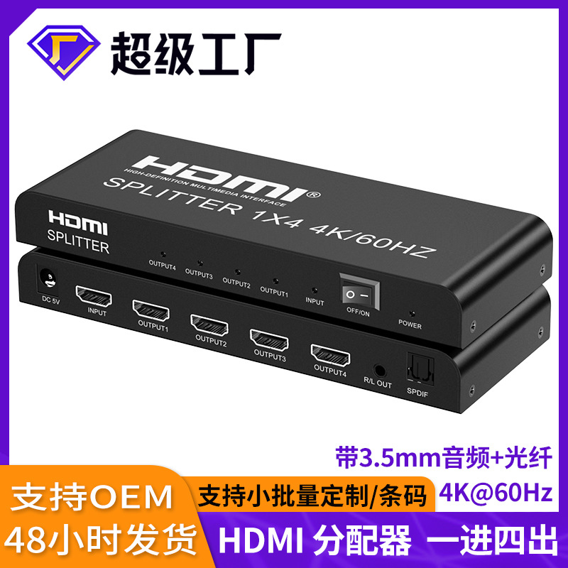 Hdmi2.0分配器1分4帯オーディオ光ファイバ分離変換器4k 60hz超清ビデオ分割器