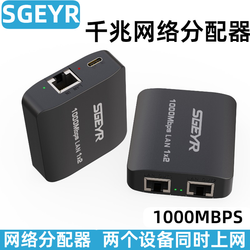 ネットワーク1対2ネットワークスプリッター、1入力2出力、同時インターネットアクセス、1対2ルーター、2ポートRJ45スイッチ
