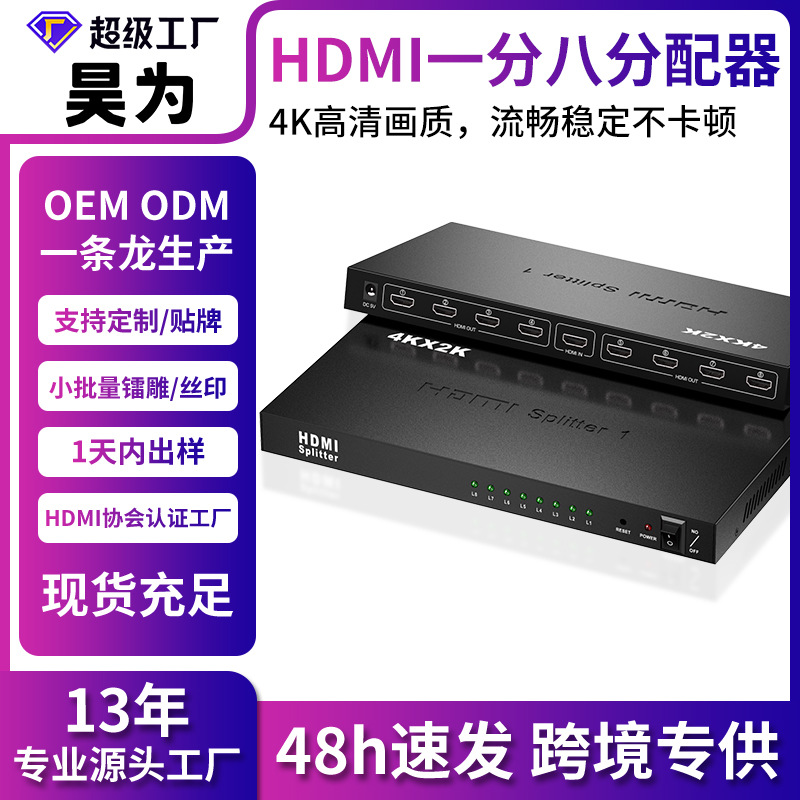 クロスボーダーhdmi分配器一分八4kシリーズhdmi一進八出テレビ売り場監視マルチスクリーンディスプレイ