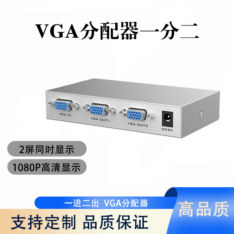 2ポートVGAスプリッター、1イン2アウト、HDコンピュータVGAスプリッター、周波数ディバイダー、1イン2アウト、金属ケース