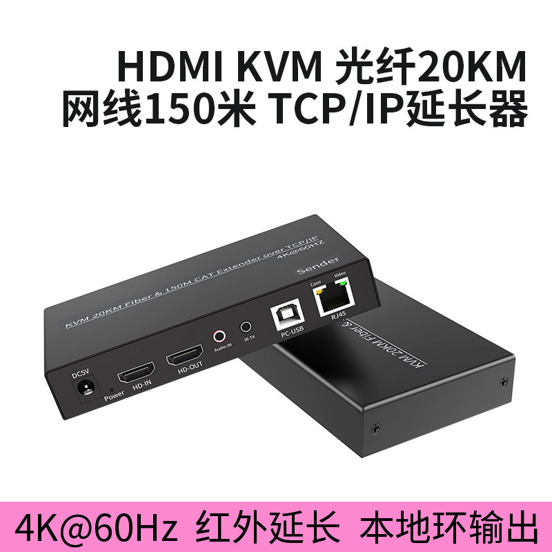 4K60HZ HDMI 光トランスミッター 光ファイバー 20KM+ネットワークケーブル 150M エクステンダー 光ネットワーク一体型 KVM USB マウスキーボード付き