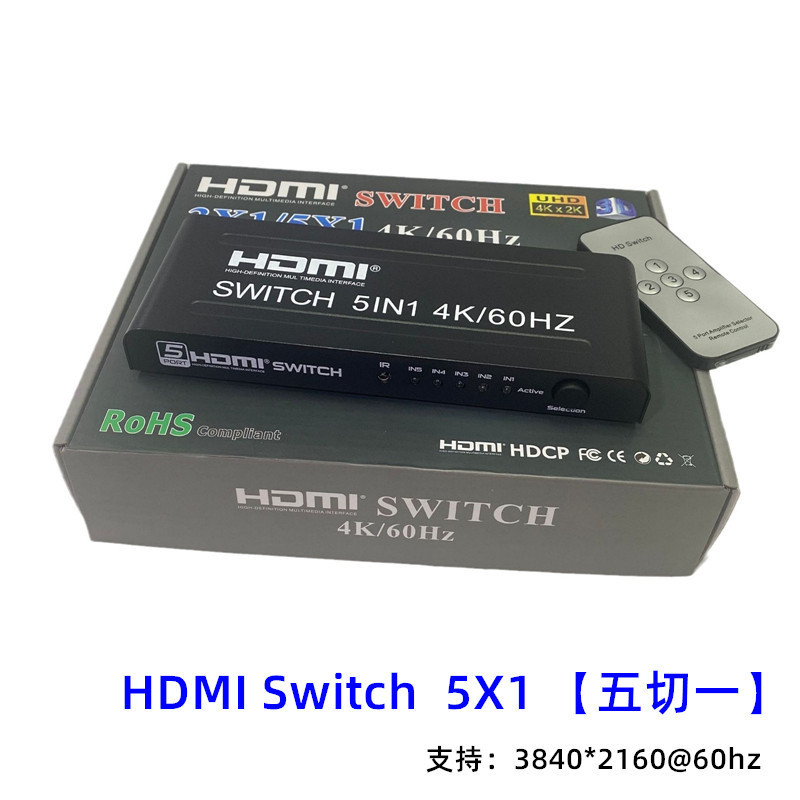 クロスボーダーHDMIスイッチャー五切一鉄シェル4K 60Hz HDMI SWITCH 5x1電源リモートコントロールスクリーン