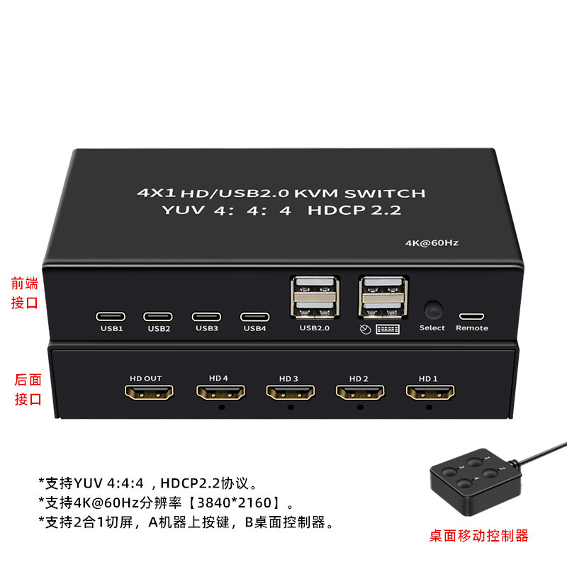 4k hdmi kvm switch 4x1 hd hdmiスクリーン共有usbキーマウスディスプレイyuv4: 4:4