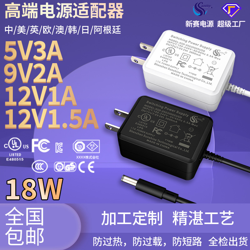 5v3a電源アダプタヨーロッパ規格ce認証12v1a監視ledランプケーブル付きスイッチング電源18wアダプタ