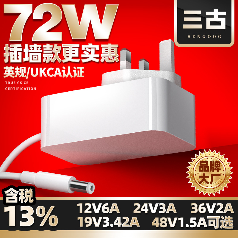 香港版 72W 電源 12V6A/24V3A/36V2A/19V3.42A/48V1.5AUKCA 認定アダプター