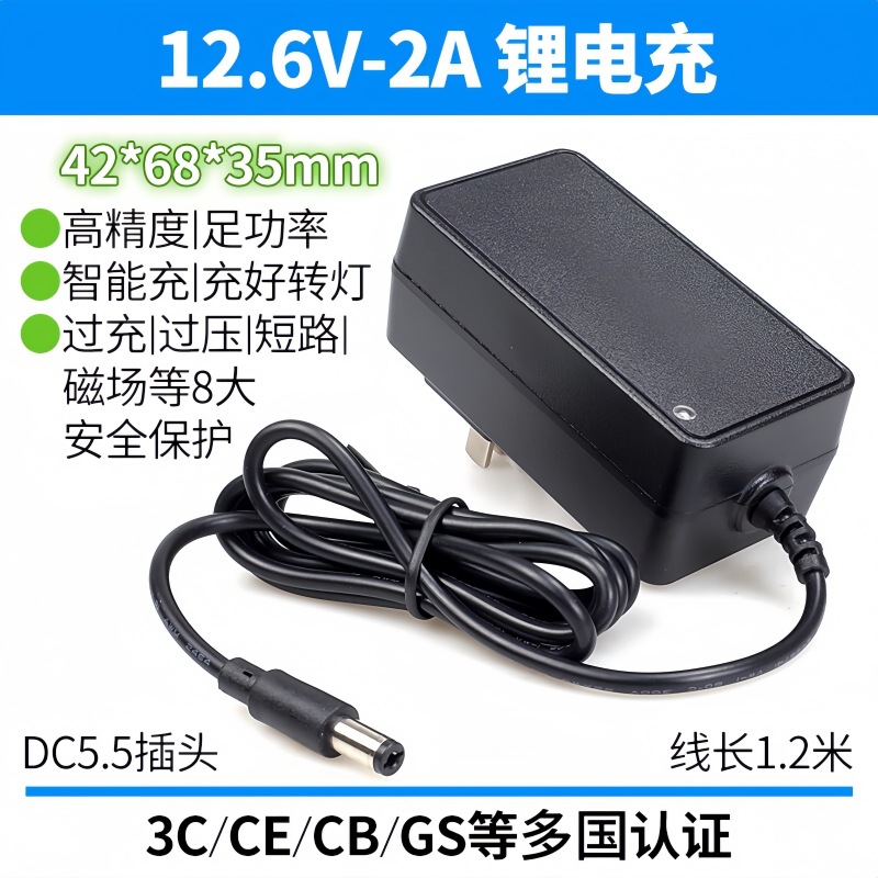 12.6V2Aリチウム電池充電器3C認証電源3本18650 25.2V1A電池充電器を適用