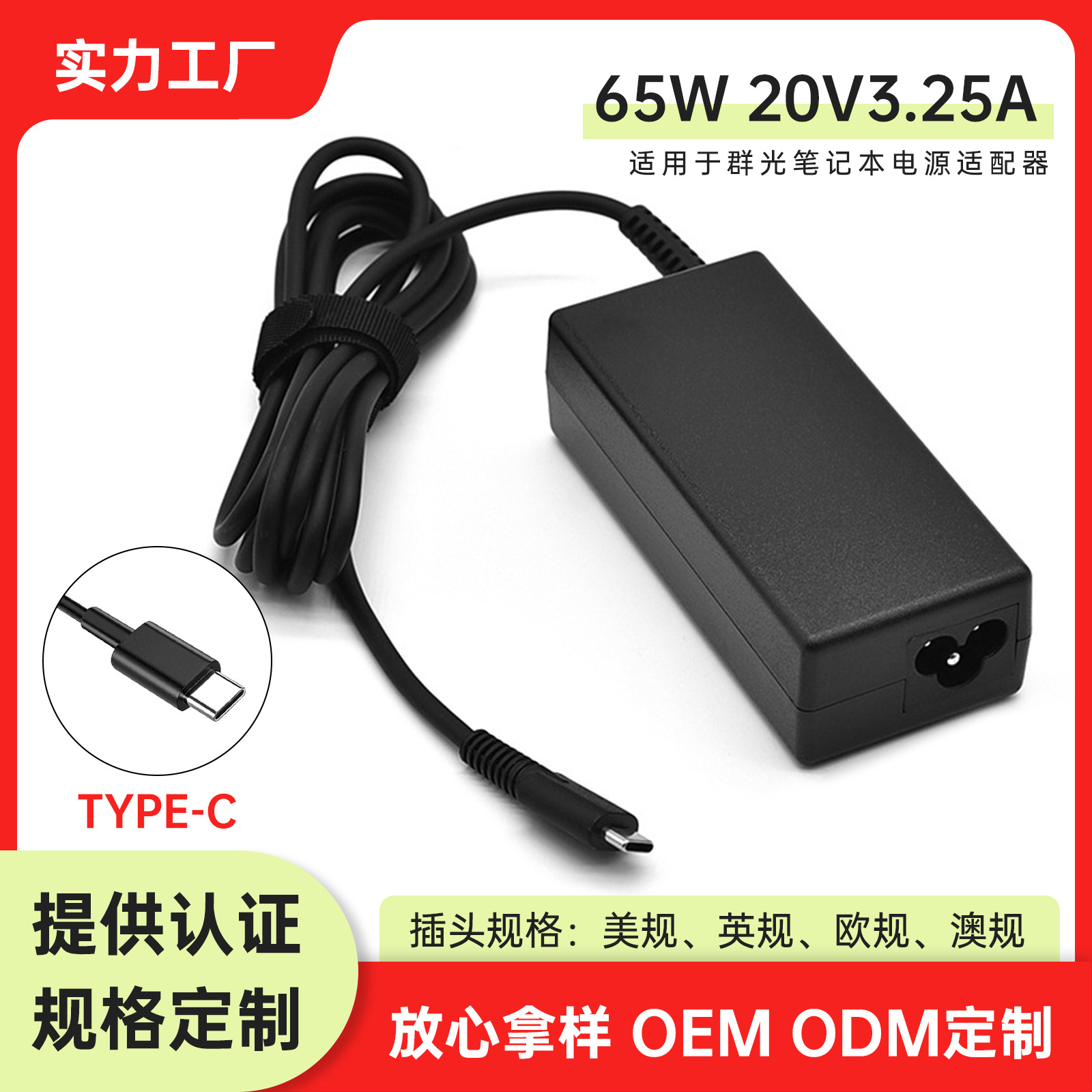 適用群光65wノートパソコン充電器20v2.25aパソコン電源アダプタtypeインターフェイス