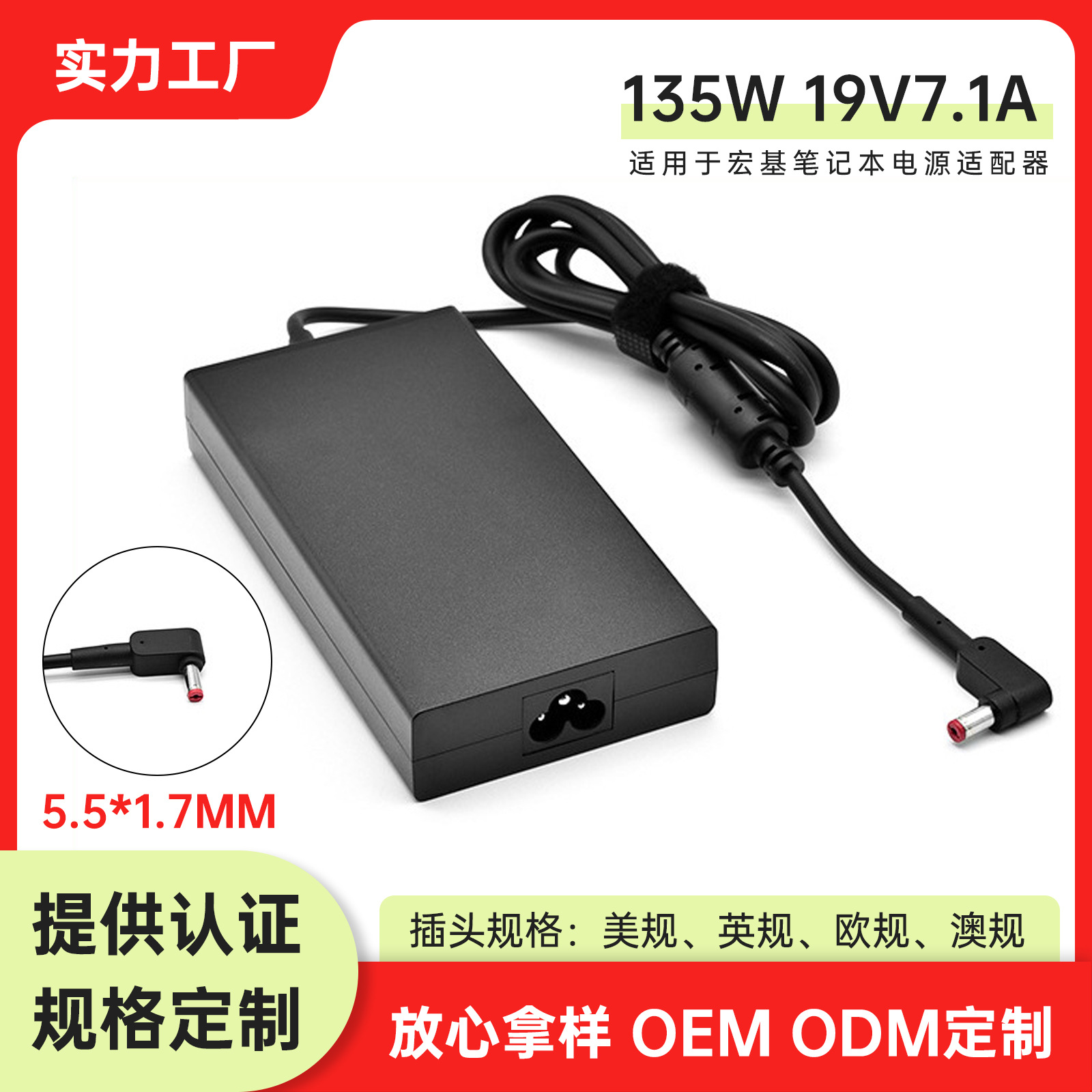Acer 135wノートパソコン充電器19v7.1aパソコン電源アダプタ5.5x1.7mmに適用
