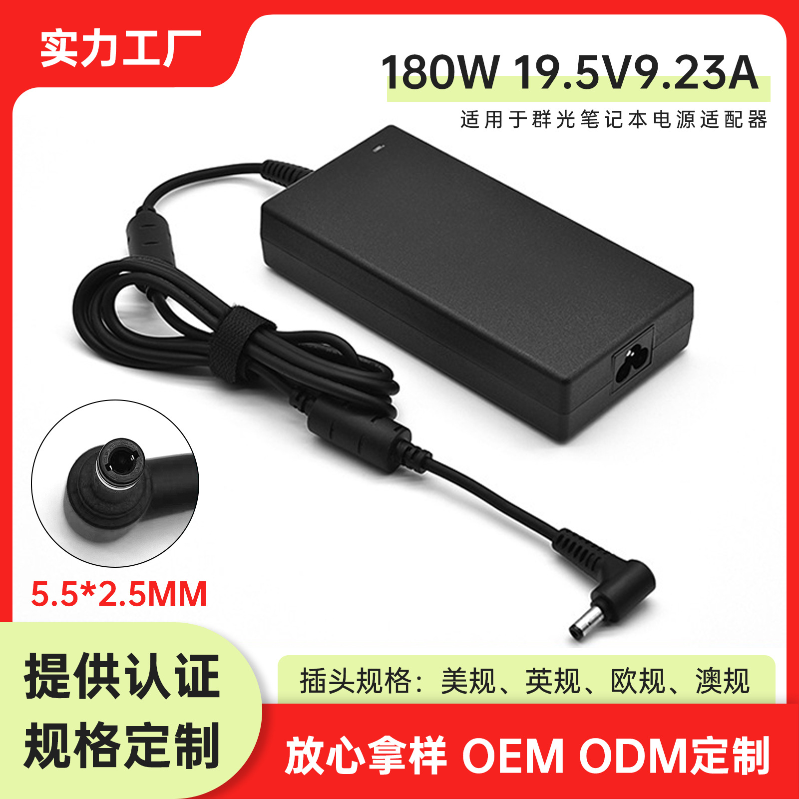 適用群光180wノートパソコン充電器19.5v9.23aパソコン電源アダプタ5.5*2.5