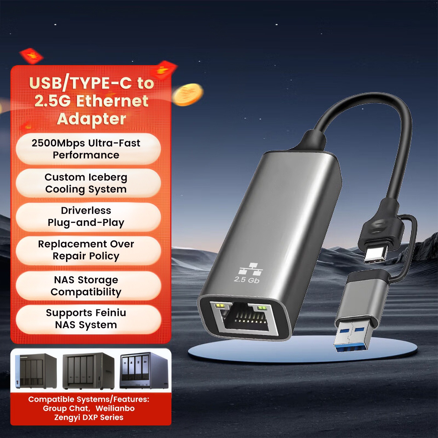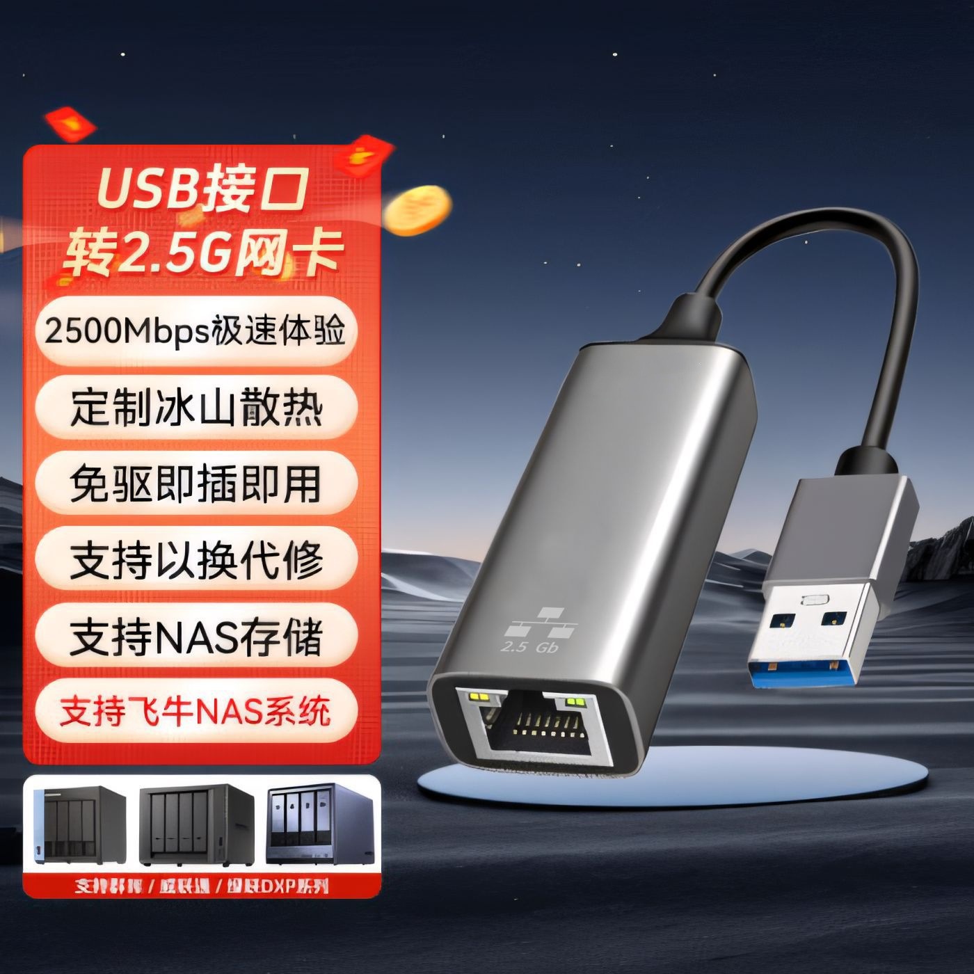 クロスボーダー usb2.5G ネットワークカードギガビット外部ネットワークケーブル変換インターフェースドライバーフリータイプ c2500M 高速ゲームネットワークカード