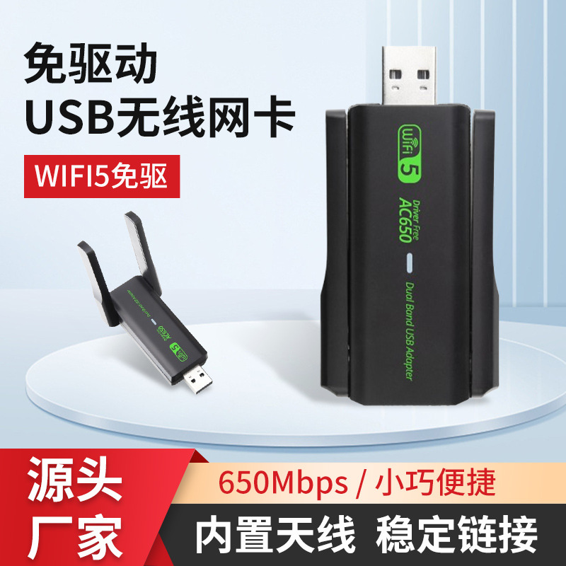 650Mbps ワイヤレス ネットワーク カード コンピュータ ノートブック WIFI5 デュアルバンド レシーバー 5G ドライブ不要の在庫供給