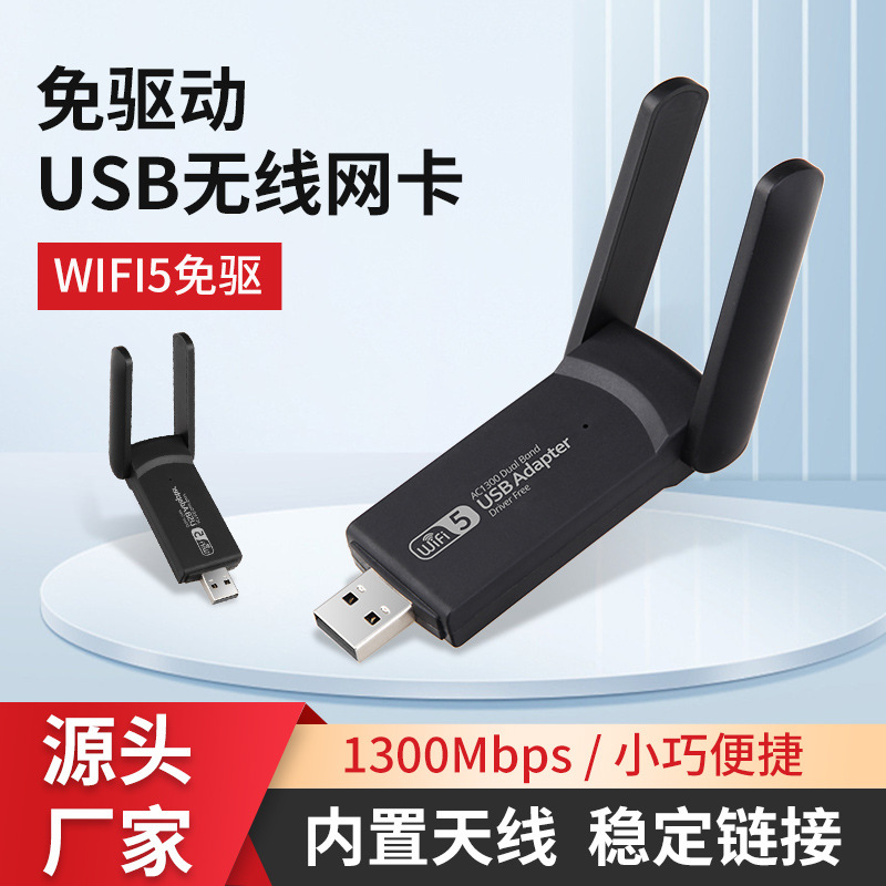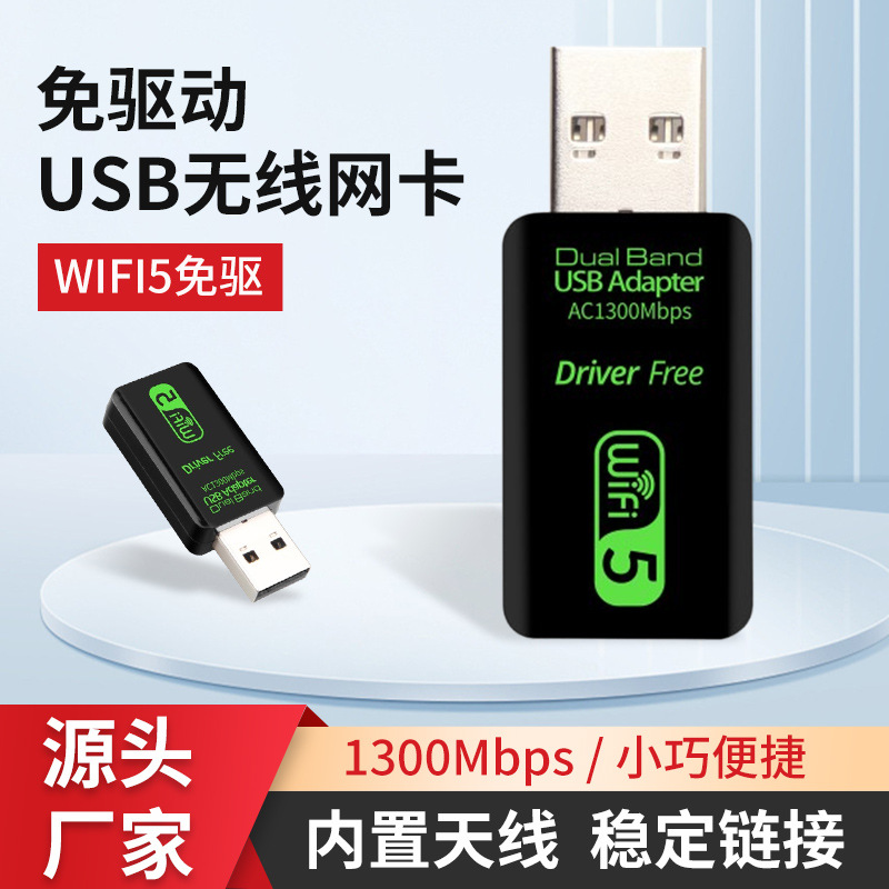 メーカーはドライバー不要の USB1300Mbps ワイヤレス ネットワーク カード デスクトップ ノートブック Wi-Fi 信号受信機を供給しています